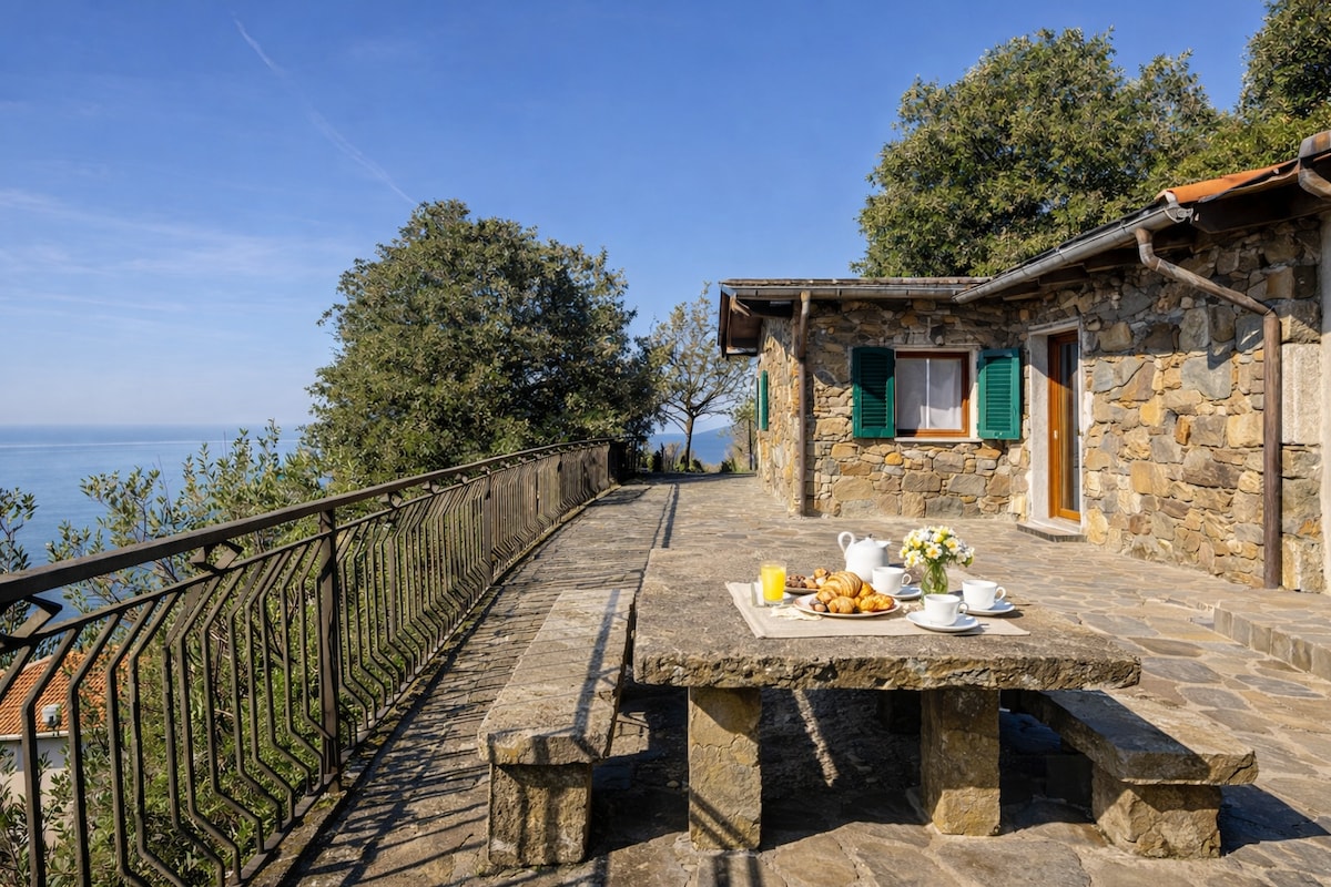 Costa Secca is a beautifully restored Ligurian stone house, renovated in 2017 with care to preserve its original charm while offering modern comfort. It includes an apartment and a studio, each with a private entrance and bathroom. The kitchen and living area are shared, the studio has a small kitchenette. Bedrooms have their own private access no internal staircase connecting them. The entire house is rented as one unit, perfect for enjoying peace, nature, and authenticity in the Ligurian Alps