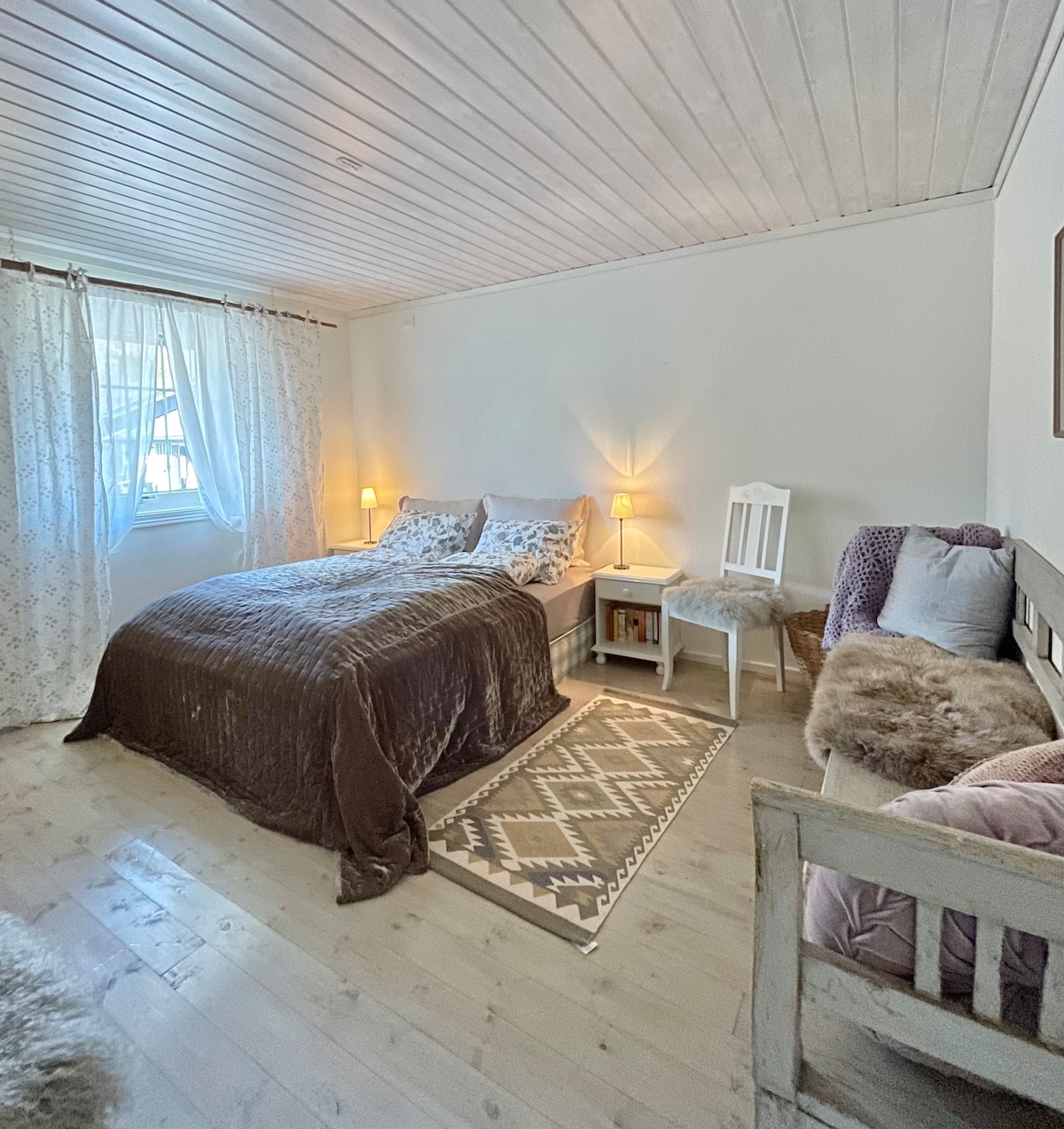 Residence a stone's throw from the sea. Lush garden shielded from view and wind. Parking for 2 cars, electric charger. Electricity included in the price. Access to boat at your own risk during the summer months if you are a boat expert. Great common areas; playground, sand volleyball, football and tennis courts. Outdoor sink for filleting fish, pizza oven and bathing areas. Tiles and heating cables on the 1st floor and wood stove/fireplace. Electric heating in 2. floor. A total of 4 bedrooms, possibility for baby travel cot. Bathroom with toilet, shower and washing machine.