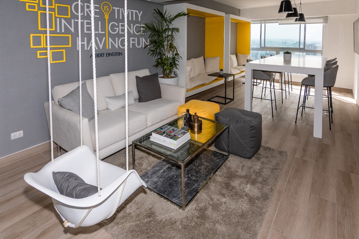100% beautifully designed by Balance Diseño, located in THE BEST area of Miraflores, Kennedy Park area where you have EVERYTHING by walking distance, Larcomar, best restaurants, super markets, traditional market, handcraft markets, 24hrs groceries and 24hrs food stops! This location also has swimming pool, functional gym, 1 free parking inside the building and excellent connections to the public transport system.