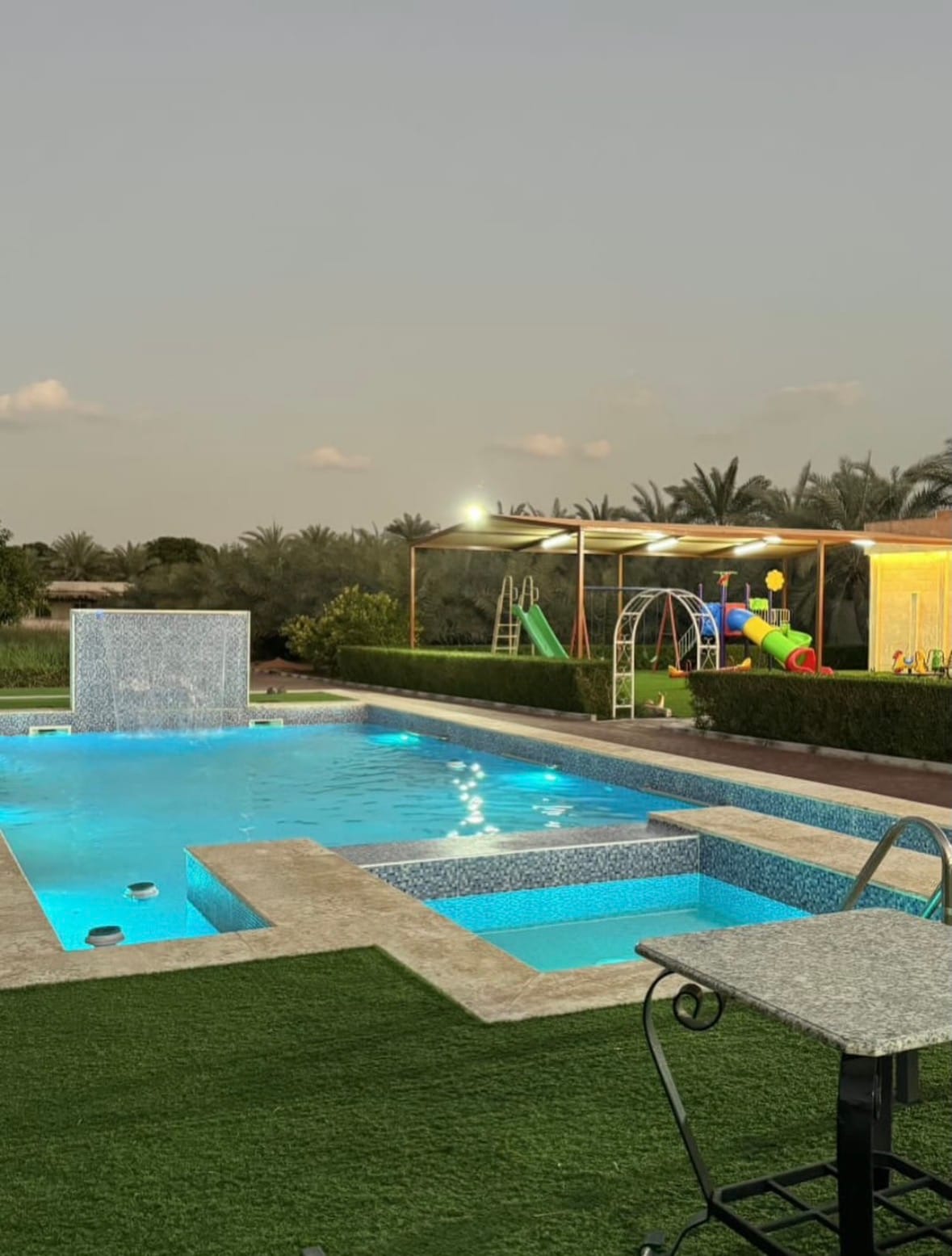 A cozy and spacious farm perfect for family gatherings and private events. It features a large swimming pool, comfortable indoor and outdoor seating areas, and a fully equipped kitchen. Guests can enjoy an outdoor BBQ area and a dedicated kids' play space, making it ideal for parties, celebrations, and relaxing getaways. The venue offers plenty of space and great privacy for an enjoyable experience.