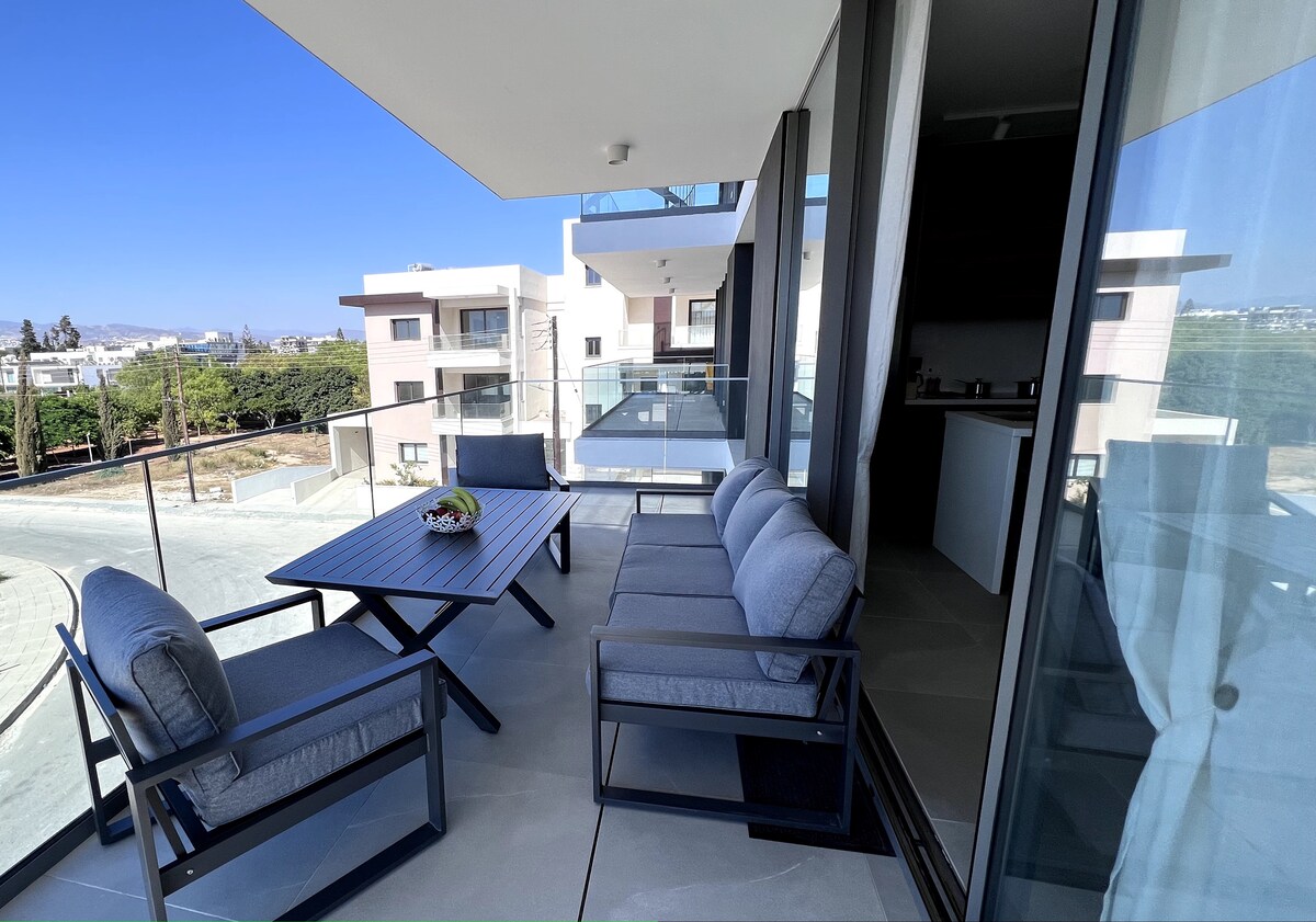 Welcome to a newly 2 bedroom lavish apartment with modern finishings. Located in prime area, minutes from My Mall, Park Gauguin ,Lady's Mile Beach, Waterpark & City of Dreams Resort Casino Hotel, Tennis Academy,& limassol Port & near AlphaMega football stadium 108 sqm of total space Master bedroom with en-suite shower 2 single beds in 2nd bedroom 2 Bathroom's in total. *Water-softener system in entire apartment Floor to ceiling windows. Open living space 55 inch Smart TV Very Large Balcony.