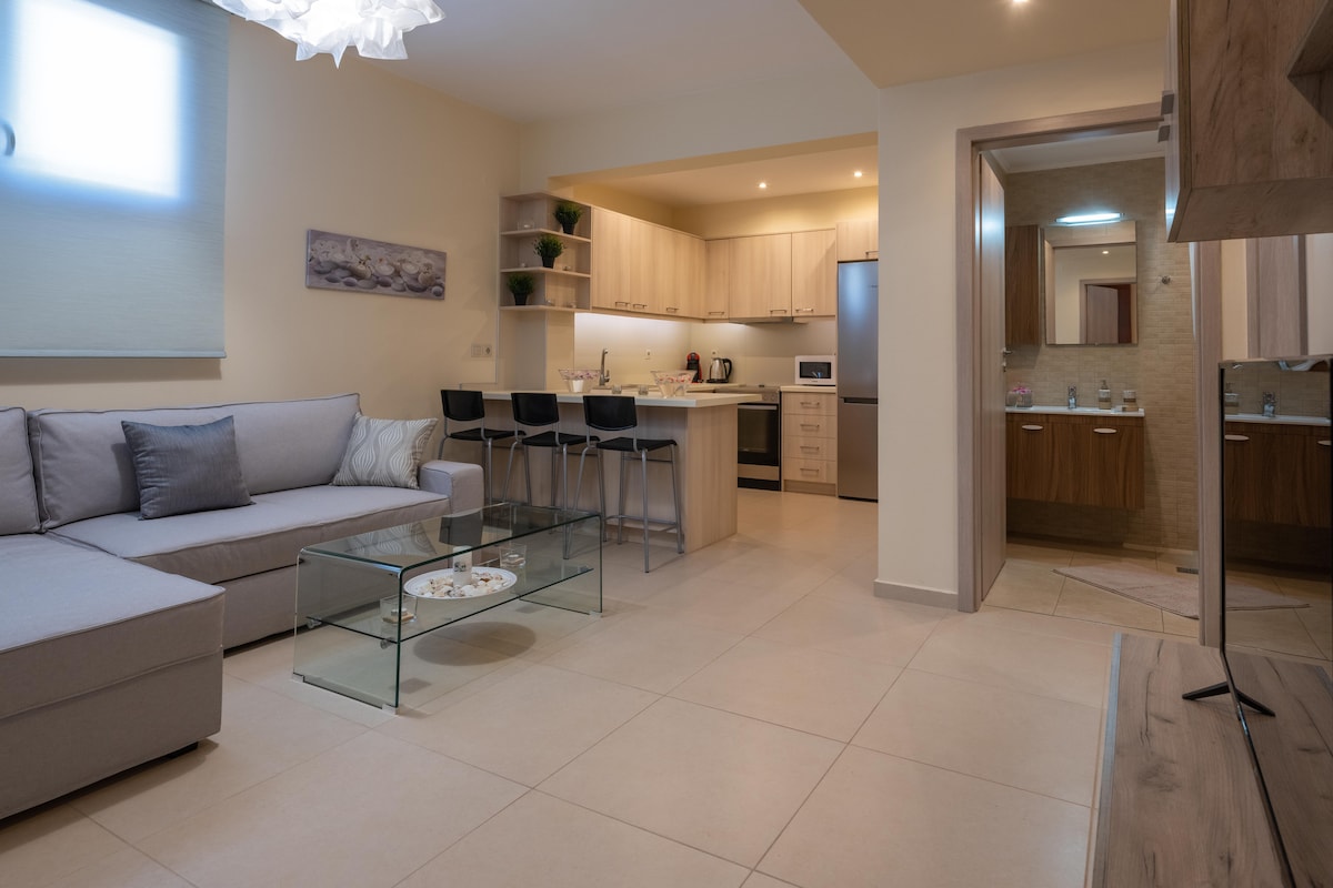 Welcome to THEATRO Living Luxury Apartment, your stylish base in the heart of Hersonissos. Our fully renovated apartment blends comfort, design, and a touch of luxury, perfect for relaxed getaways or vibrant adventures. Whether you're exploring Crete as a couple, a family, a group of friends, THEATRO Living Luxury Apartment offers a refined stay in a central location close to beaches, restaurants, and the island’s top sights. Live modern. Rest in style. Stay at THEATRO.
