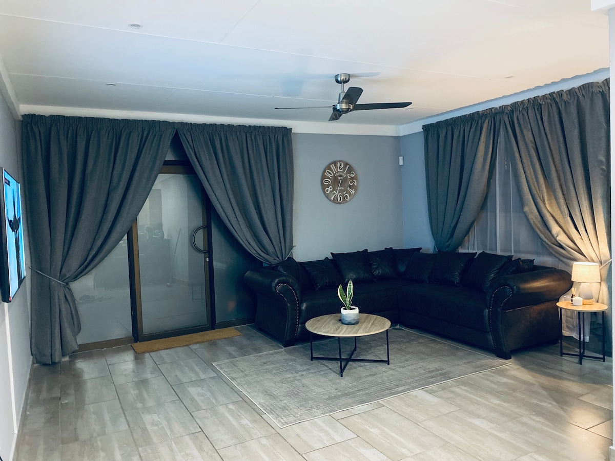 Perfect for 6 guests ; families, friends or groups. This modern home is furnished, clean, comfortable with dedicated braai area. Has 24 hours security system. We offer special room decor setup based on what you are celebrating i.e birthday, anniversary, office meeting, congratulations etc upon request at an extra reasonable fee.