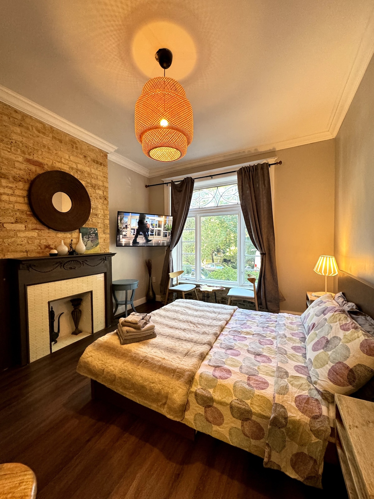 Nestled in a historic 1920s renovated hotel, this apartment retains charming Art Deco arches that add a touch of history to its modern comforts. Featuring warm timber floors that connect two cozy bedrooms with queen beds to a contemporary kitchen. Each room has a TV, and the kitchen is fully stocked for your convenience. With two full bathrooms and barrier-free one-floor access, this space combines old-world charm with modern living in the vibrant heart of Lincoln Park, close to the Lakefront.