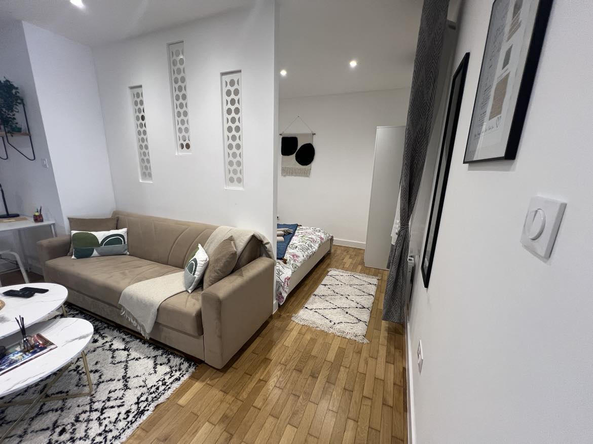 Enjoy a refurbished 2nd floor home with character and elegance Everything has been redesigned to ensure that the guest experience is there. Enjoy a bathroom with bathtub to relax. Spend a good night with our quality bedding, mattress and bed (SIMONIS), and a new sofa bed. Enjoy a beautiful terrace with unobstructed garden views while enjoying the sunset. You also have secure private parking at your disposal.