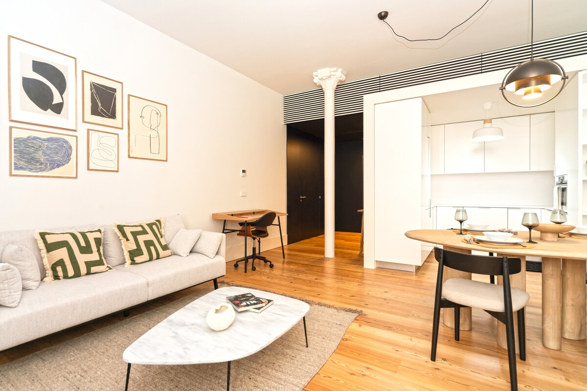 Ideally located in the heart of the city, this comfortable and modern apartment makes the perfect base for an authentic Lisbon experience. Located next to the Arco da Rua Augusta and Praça do Comércio, it offers direct access to the lively streets, restaurants and shops. With the convenience of self-check-in and thoughtfully designed stylish furnishings, it can accommodate up to 4 guests. It features a comfortable living area, dining area, en-suite bedroom, toilet and fully equipped kitchenette.