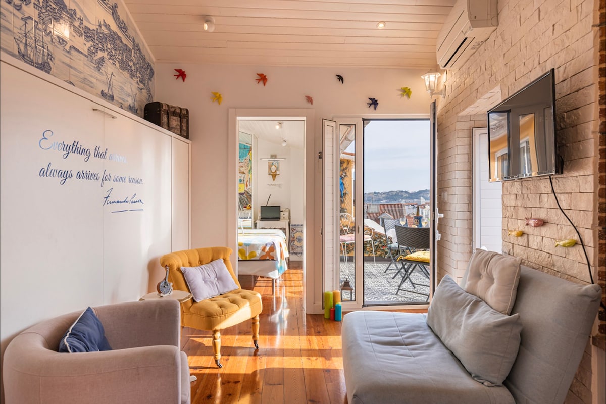 The best views in Lisbon from a very open flat, with its own exclusive terrace and no neighboors on the same floor, in a quiet location in the city's best district, fully equipped and tastefully decorated. This unique accommodation is close to all the sites and amenities, making it easy to plan your trip. Cheap and convenient luggage storage right in front of the building. Self check-in with smart lock. Arrive anytime after check-in hour.
