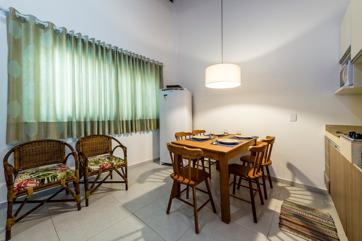 Casa Céu combines elegance, comfort and lightness in spacious, bright and naturally ventilated environments. The suite offers a queen-size bed, air conditioning, a closet, a bathroom with a hot shower, and an exclusive workspace. The spacious kitchen integrates harmoniously into the house, and the dining room at night takes on a romantic atmosphere. The highlight is the outdoor area, with a bathtub surrounded by a beautiful garden, perfect for relaxing and connecting deeply with nature.