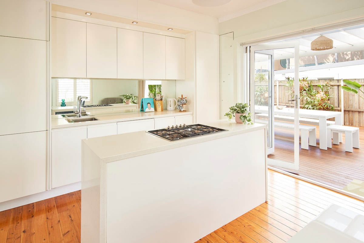 Rated one of the top 14 Airbnb's in Sydney by Urban Space. Light filled studio brimming with flowers & ferns, & a glorious stone bath for two. Opening onto extensive gardens with beach access from garden gate. All essentials: En-suite, kitchenette including microwave, toaster, coffee machine & jug. Adjacent undercover BBQ & gas ring. Organics products & fresh fruits included with breakfast. Please advise if gluten or lactose free. NB: Adult's only retreat, no children or pets.