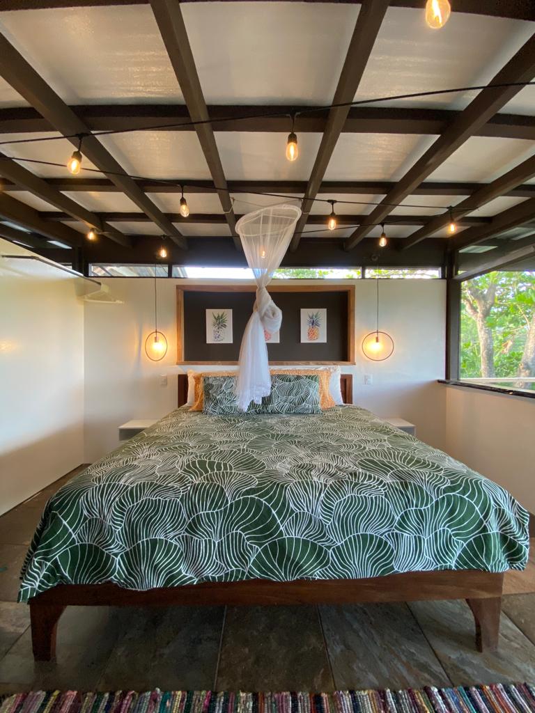 The Casita cabana offers an incredible view located near the beach. It features a charming veranda complete with a hammock and a comfortable lounge chair. This cabana is a double bed cabana. With a private bathroom with a lovely shower. The shower is thoughtfully designed to conserve water, boasting a ceiling of sky, a floor of smooth rock, and walls made of bamboo. We've filled the dispensers with our own natural handmade soaps, crafted with care and creativity, for your enjoyment.