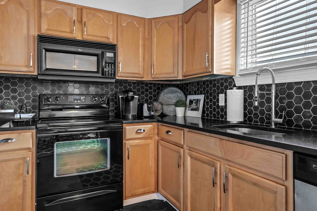 BAYFRONT sunset views, DOCK & BOAT SLIP, 3 BR townhouse, 6 min walk to beach. 2 decks, 2 KAYAKS, paddle board, 2 driveways, WiFi, 50 inch TVs w/Samsung +, Netflix, Max, Hulu, Prime, Disney. 2 King beds, 1 full bed. 2 Pack n Plays. Keyless entry. Outside shower, grill, big back yard. All new Raymour & Flanigan beds, mattresses, & furniture. Beach cart, 4 tags, chairs, umbrellas, toys. Linens/bedding/ bath & beach towels, keurig. Sleeps 6 + 4 kids- 2 PNPs, 1 air matt & cot