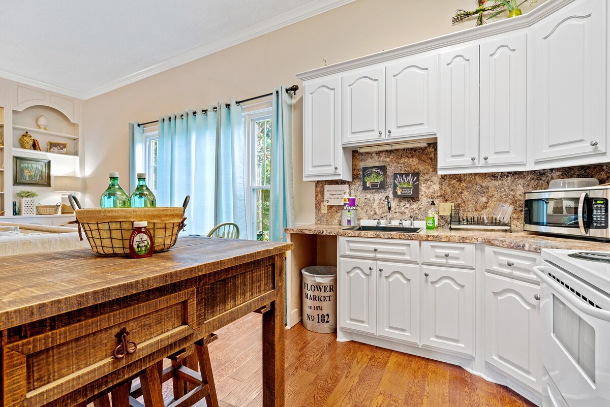 Experience cozy elegance in our 1-bedroom unit, featuring a full kitchen with granite countertops, a plush bed promising restful nights, and a charming living space. Perfect for solo travelers or couples seeking a tranquil escape. If only driving through for the evening, it's a quick 5 minute drive from the interstate--making it easily accessible. Welcome to a piece of our past with all the comforts of home. Your retreat awaits!
