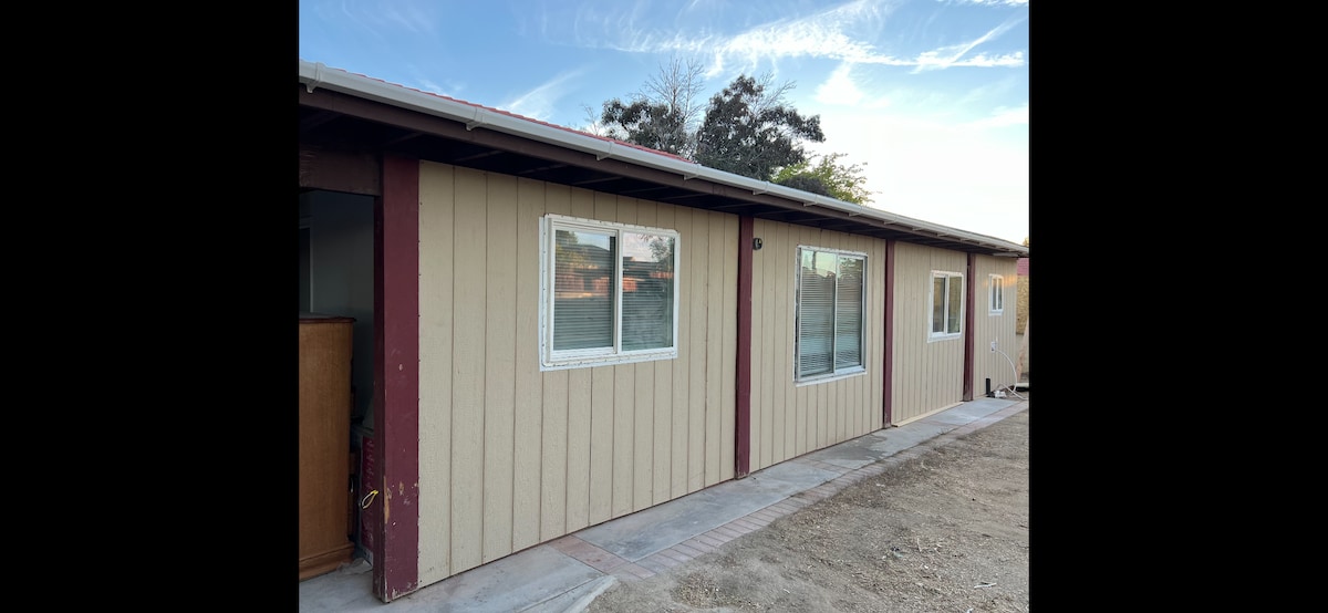 Nightly and long-term stays available! Relax in your own private guest house with a full bathroom and a secure, fenced backyard — ideal for morning coffee or evening unwinding. Just 1–2 miles from Target, Walmart, and Stater Bros for all your essentials. Quiet, cozy, and completely yours. Need a ride? Pickup available for a small fee. Whether you’re here for a quick trip or an extended stay, comfort and convenience await.