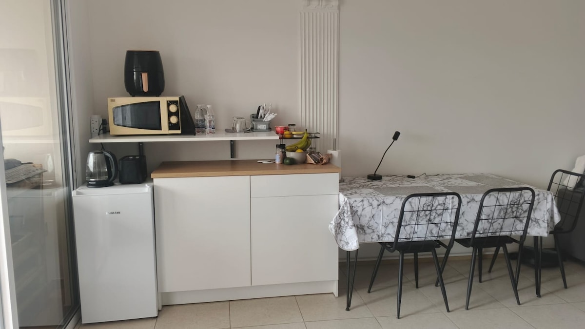 Kick back and relax in this calm, stylish space. Our sunny studio oasis is perfectly located in a quiet residential building in central Larnaca. Enjoy easy access to the Metropolis Mall and the beautiful Larnaca Finikoudes beach, just a 5 minute drive away. The airport is conveniently situated a short 12-minute drive from your doorstep. Our apartment is an ideal base for exploring all that Larnaca offers, with easy access to highways connecting you to Nicosia, Limassol, and Ayia Napa.