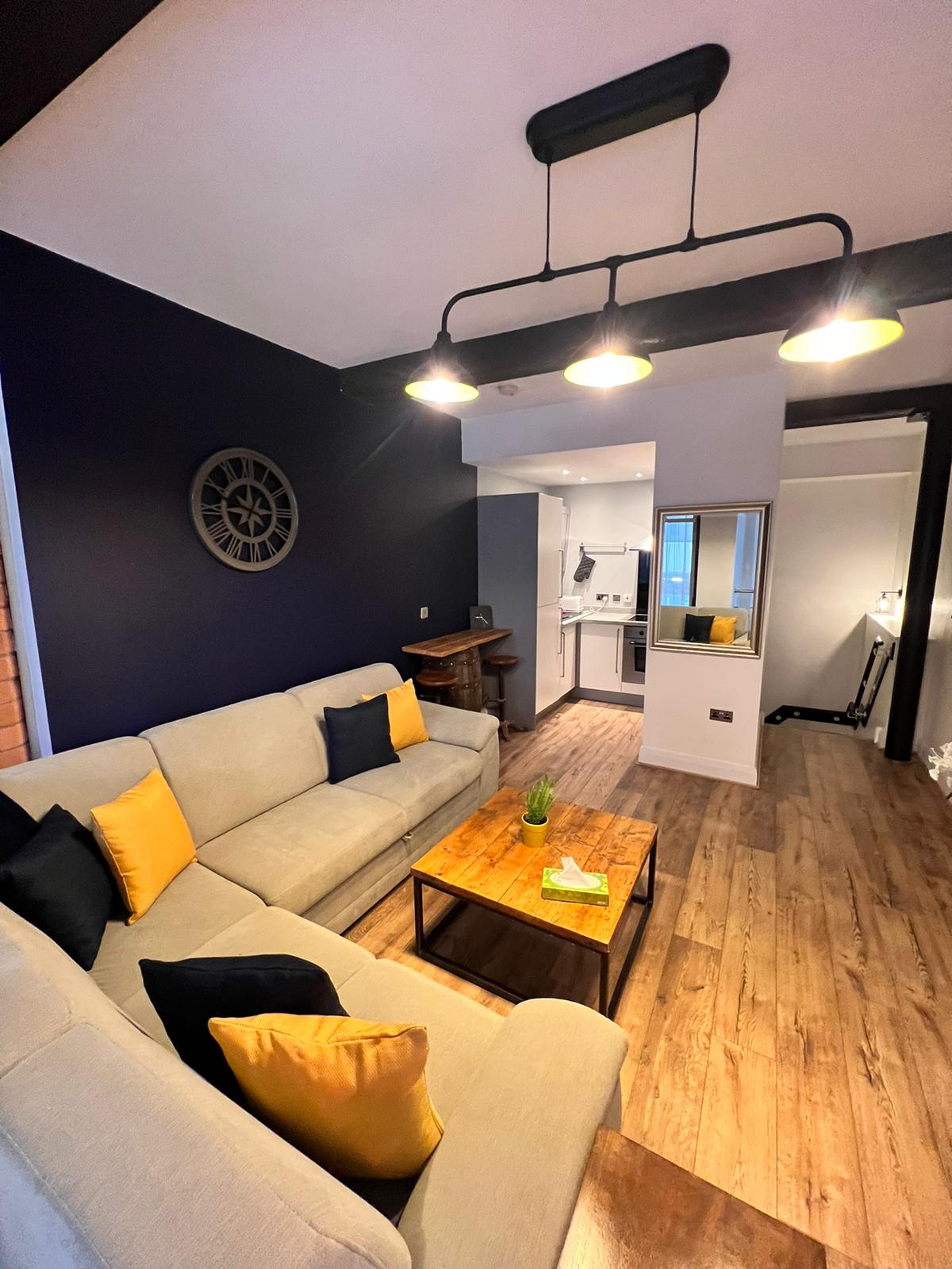 Welcome to <b/>The Seven Suites<b/>, Luxury Living on Bold Street in Central Liverpool! <b/>This cosy yet modern apartment is perfect for you!<b/> Whether you're here for business, leisure, or a mix of both. <b/>Property Highlights:<b/> ★ <b/>X1 Double Bed, X1 Single Bed & Sofa Bed ★ With 55" Smart TV ★ High-Speed 5G WiFi ★ Professionally Cleaned for a pristine stay ★ Fully Equipped Kitchen for all your cooking needs ★ Local Parking Options<b/> You couldn't choose a more central location!