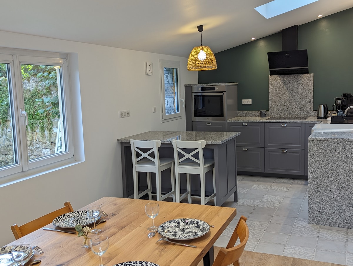 Discover this charming house carved into the cliff, perfect for a stay for two: - Bedroom with king-size bed, candle-lit hot tub, adjustable TV, Italian shower. - Two living rooms with TV, fully equipped kitchen, pellet stove, entertainment: Netflix, PlayStation 5, Switch, darts... - A terrace with garden furniture. - An office space with double screens and dressing room. A calm, warm and atypical place, between rustic charm and modern comfort.