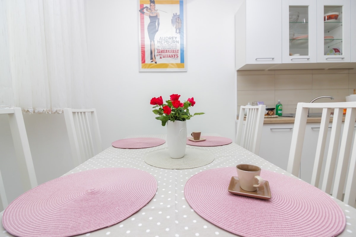 This apartment is located in a beautiful location in the center of the old town of Zadar. The balcony offers a beautiful view of the peninsula where there are many monuments. From the balcony you can enjoy the sea view, you can experience the most beautiful sunset. Here you can spend one of the most beautiful and romantic holidays.