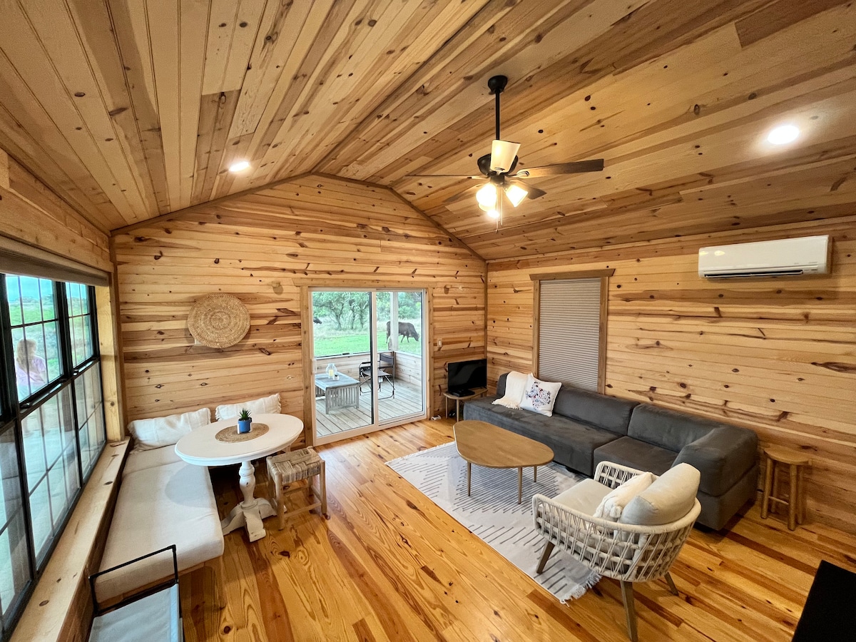 Step into one of the cutest, coziest, homiest little cabins you could find! From the time you walk through the door you will be enveloped in a sense of home. The space may be small, but windows on every wall, the peaked ceiling, and the relaxing minty and gray color scheme inspire the feeling of openness! Perfectly located in the middle of the alluring Texas Hill Country, you'll be ready for any adventure when you discover the cabin that will become the sweetest spot in your travels!