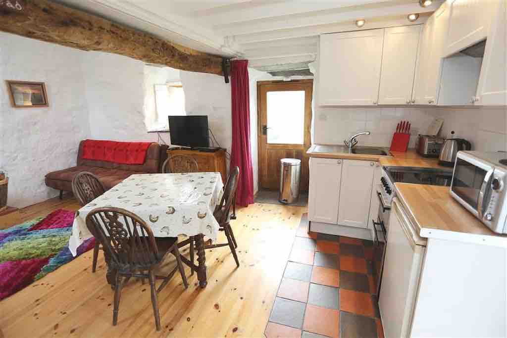 A good quality contemporary apartment situated on the first floor, accessed by stone steps adjoining the owners farm house on a working farm, in the village of Tudweiliog. It has a pleasant private balcony area, south west facing with views accross the rolling countryside. A charming mix of original beams, and clean modern interior makes this property spacious for couples. The tip of the Lleyn Peninsula is home to many sandy beaches and coves. Shop and pub one mile in village.