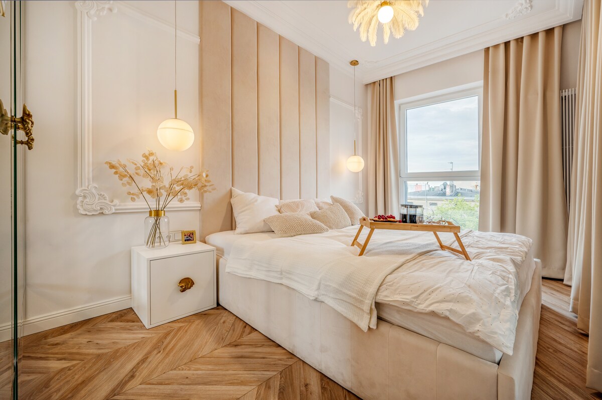 An apartment in a charming, restored tenement house, located next to the Lodz Film School, the Museum of Cinematography and the beautiful Źródliska Park (Palm House). This allows you to enjoy morning jogging, walking in the park or lounging with a coffee in your hand in the park cafe. A dream location for people who like to explore, as well as those who want to relax. In the area there are tram and bus stops, OFF Piotrkowska, Księży Młyn, Scheibler's factory, Monopolis and EC1.