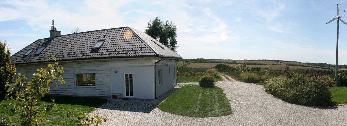 Do you have enough courage to visit the heart of Polish countryside? Don't worry! Is doesn't have to be that hard!Our house is beautifully situated among the fields and forests, far away from everything. You may get in touch with domestic and even some wild animals, experience the silence and quiet. But at the some time you'll find yourself in a place, where hosts know what you may need, because we travel too.