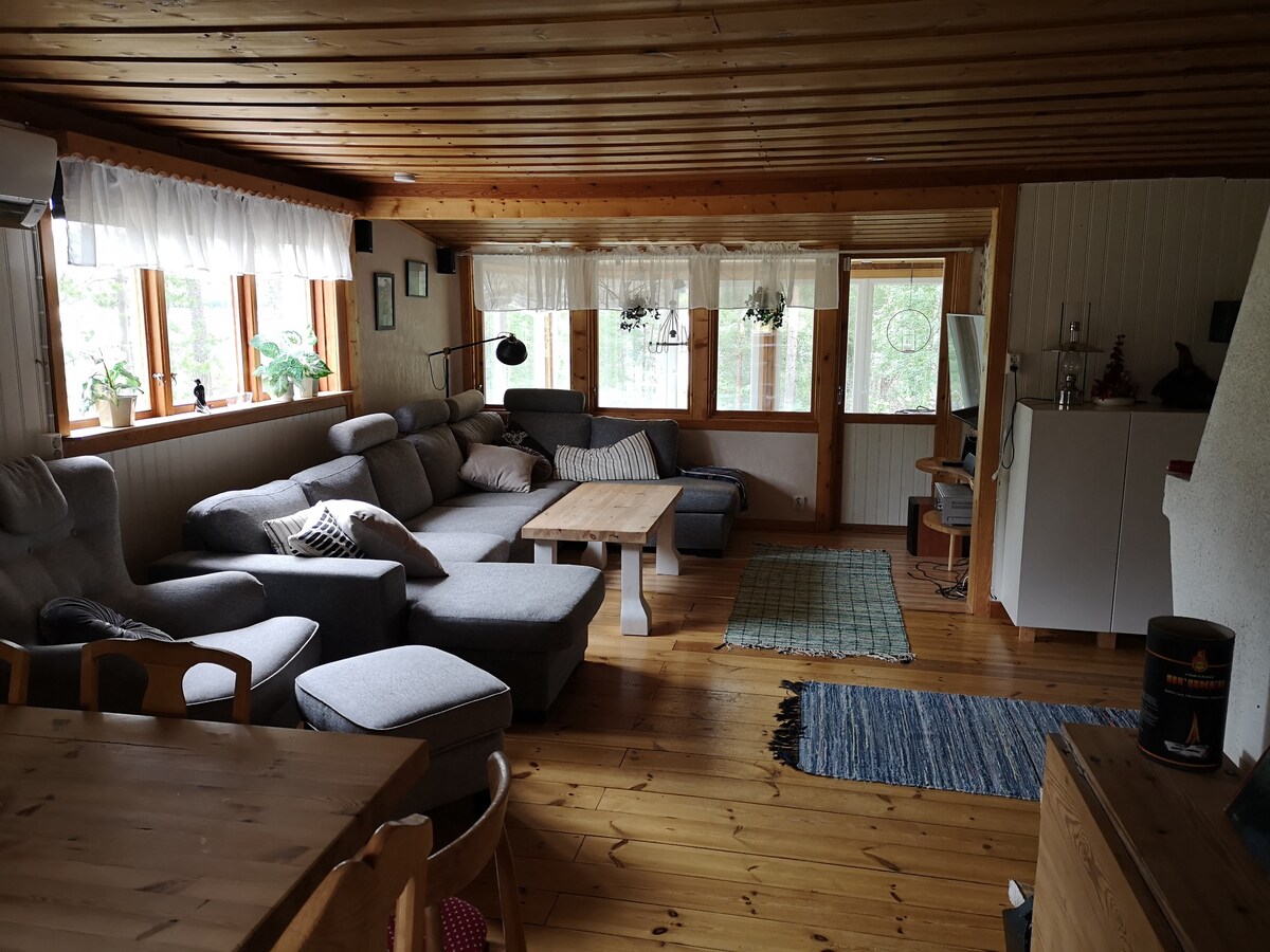 Comfortable family accommodation with 8 beds, a cosy fireplace and sauna. Parking for 2 cars. Proximity to nature, the alpine ski resort, cross-country/hikning/biking trails. Newly renovated kitchen+bathroom (2021). Dishwasher, microwave, Wifi, AppleTV. Plenty of summer/winter activities: downhill biking, hiking, swimming, fishing, skiing, ice fishing, skating, ride a snowmobile or tracked vehicle. The village (3 km) offers good restaurants, food store and sports shop, open all year round.