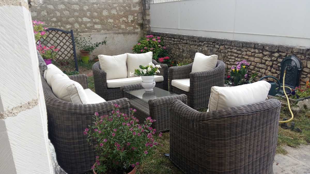 Troglodyte, atypical, quiet in the city, garden + terrace 1-4 people (1 bed + 1 sofa bed in the living room) Space 1: Living room (1 sofa bed) – TV, dining room, kitchen, Space 2: 1 bedroom, bathroom/toilet The two spaces are not connected, (you have to go through the private outside to go from space 1 to space 2, and you have to go through the bedroom to go to the bathroom/shower room). Walking access by narrow stairs, free public parking, unsupervised 5 minute walk away. No WIFI. Bed and bath linens provided.