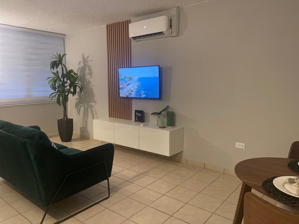 They will undoubtedly adore it! Aventura Apartment located in a quiet residential area "not touristy", but only minutes from beaches, airport, supermarkets, Old San Juan and Isla Verde are touristic. Supported by Renewable Energy, solar panels, Tesla Battery, Generator and Cistern. The property is adjacent to Hacienda Campo Rico, where you can enjoy Paseo Caballo, Four Track and “El Mojito” Restaurant. Distance to Isla Verde (14 min), Old San Juan (23 min), Airport (11 min).
