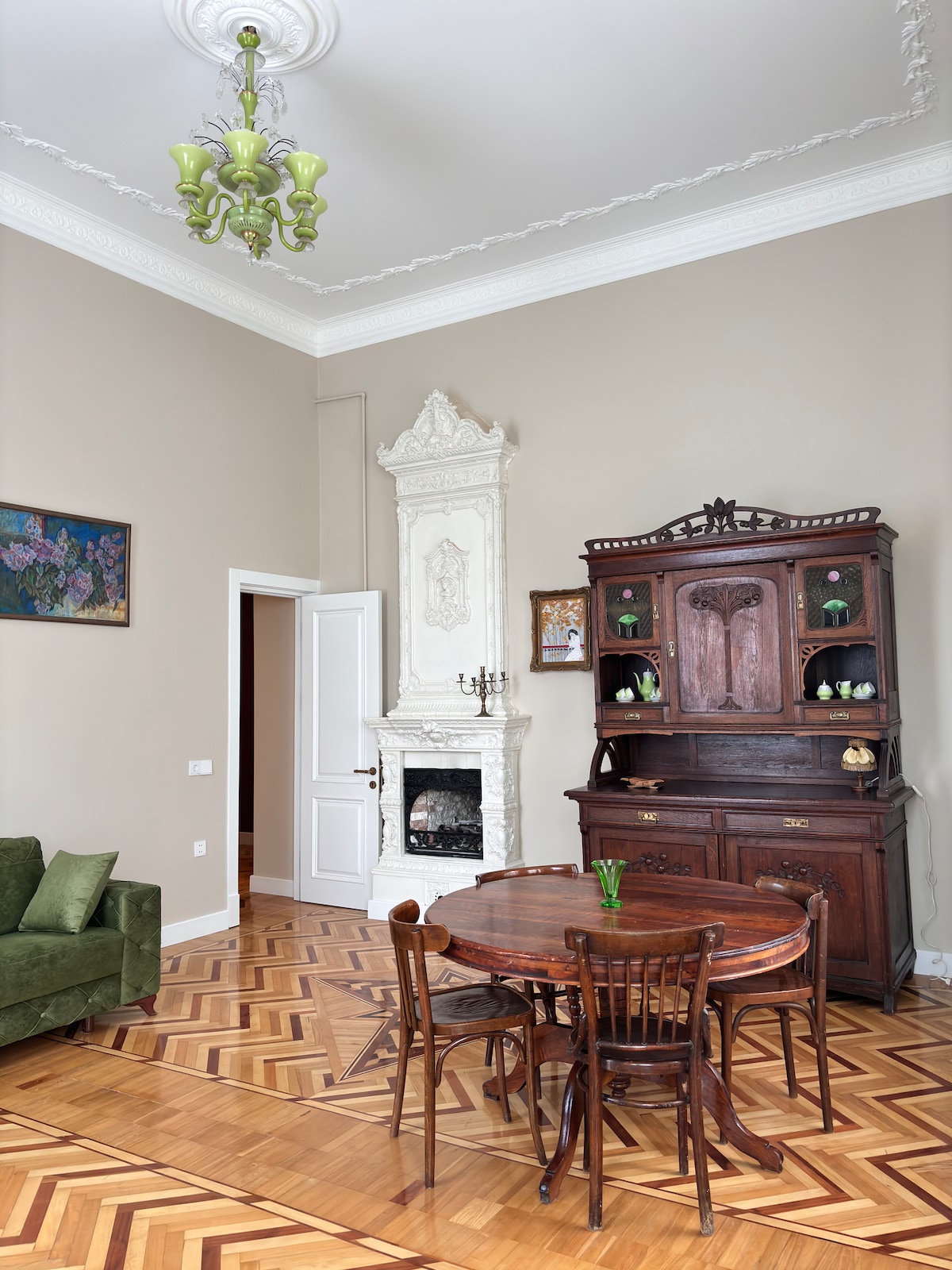 Heart of Baku: Spacious 100m² Apartment near Fountain Square This 100m² apartment in the “House with Angels” is just one flight above a bustling street in downtown Baku. Enjoy city life from the balcony or take a quick walk to Nizami Street and Fountain Square. With high ceilings, modern amenities and a glowing 4.97 guest rating, this bright, stylish home has everything you need and promises a comfortable stay in downtown Baku