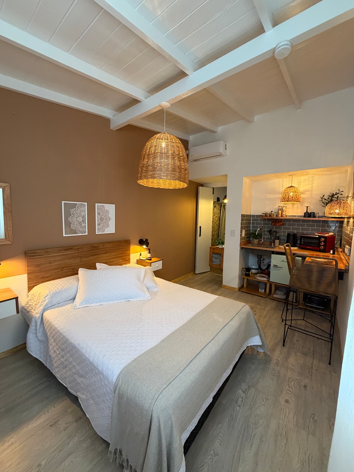 Relax in this quiet and elegant space. Come and enjoy a stay as a couple or as a family. The area where it is located is quiet, and the neighborhood is very nice. Three blocks from the main avenue. Supermarket meters from the establishment. It is a warm and harmonious place to spend a unique stay.