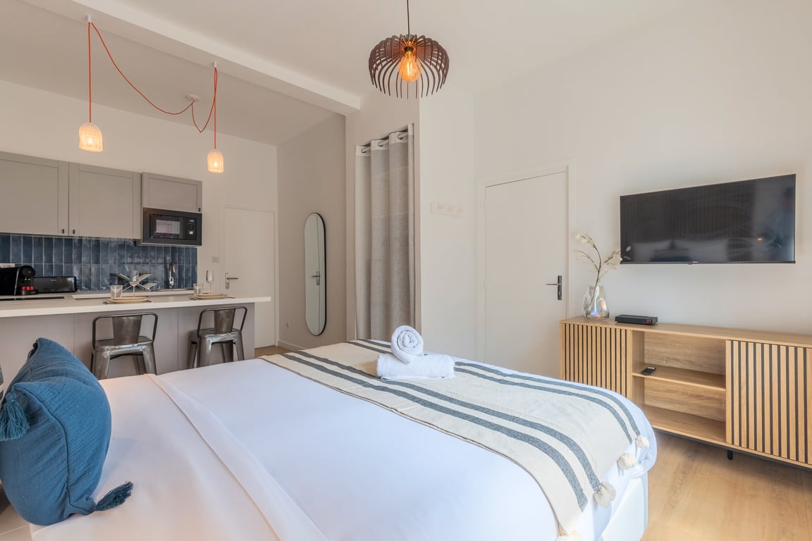 Bienvenue dans votre gîte privatif de 46m², au calme et en pleine verdure, à seulement 20 min du centre de Lille ! Profitez d’une grande chambre avec lit Queen size, d’une cuisine lumineuse donnant sur le jardin, d’un coin détente et d’une salle d’eau moderne. Parking privé, climatisation, linge fourni. Métro Lomme Bourg et commerces à 5 min à pied. Un cocon unique pour allier confort, repos et proximité de la ville.