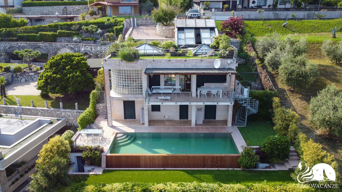 Elegant villa on two levels with private pool, garden and terrace, located in a quiet residential area just a few steps from the lake, in Sirmione.<br><br>This charming property welcomes guests into a spacious and bright living room, furnished with a comfortable double sofa bed, dining table with chairs, Smart Tv, and a modern open-plan kitchen fully equipped with oven, microwave, dishwasher, electric kettle, juicer, toaster, and American coffee machine.