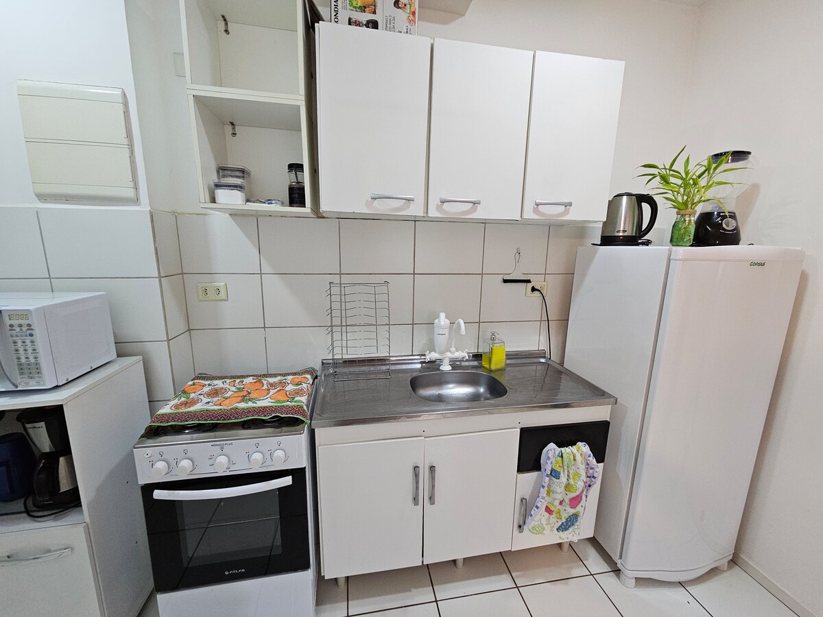 Newly renovated apartment, all in porcelain, finely decorated, open kitchen with refrigerator, cabinets, Cooktop, various utensils available. Bedroom with work desk, split air-conditioning, Wi-Fi access, cable TV, hairdryer, wardrobe, etc... The condominium offers a leisure area containing a fitness center, sauna and swimming pool. Flat located in the noblest central area of Londrina. This is your chance to stay in a high-end flat in an excellent condominium.