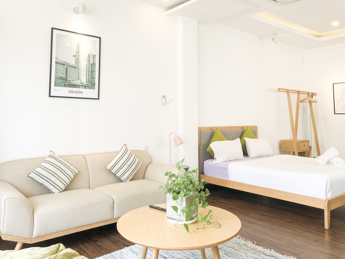 Established in 2023, We offer High Quality Short and Long Let Serviced Apartments located right on a busy street with famous cafes, restaurants, Circle K and convenient stores near by and just a few minutes walk to Bui Vien walking street, Tao Dan Park. Cost-effective compared to hotels, we provide 1 BR serviced apartments with privacy, modern style, kitchen, balcony, soundproof door & windows, desk space to work, rooftop garden, elevator, regular cleaning and the comforts of a “Home-from-Home”.