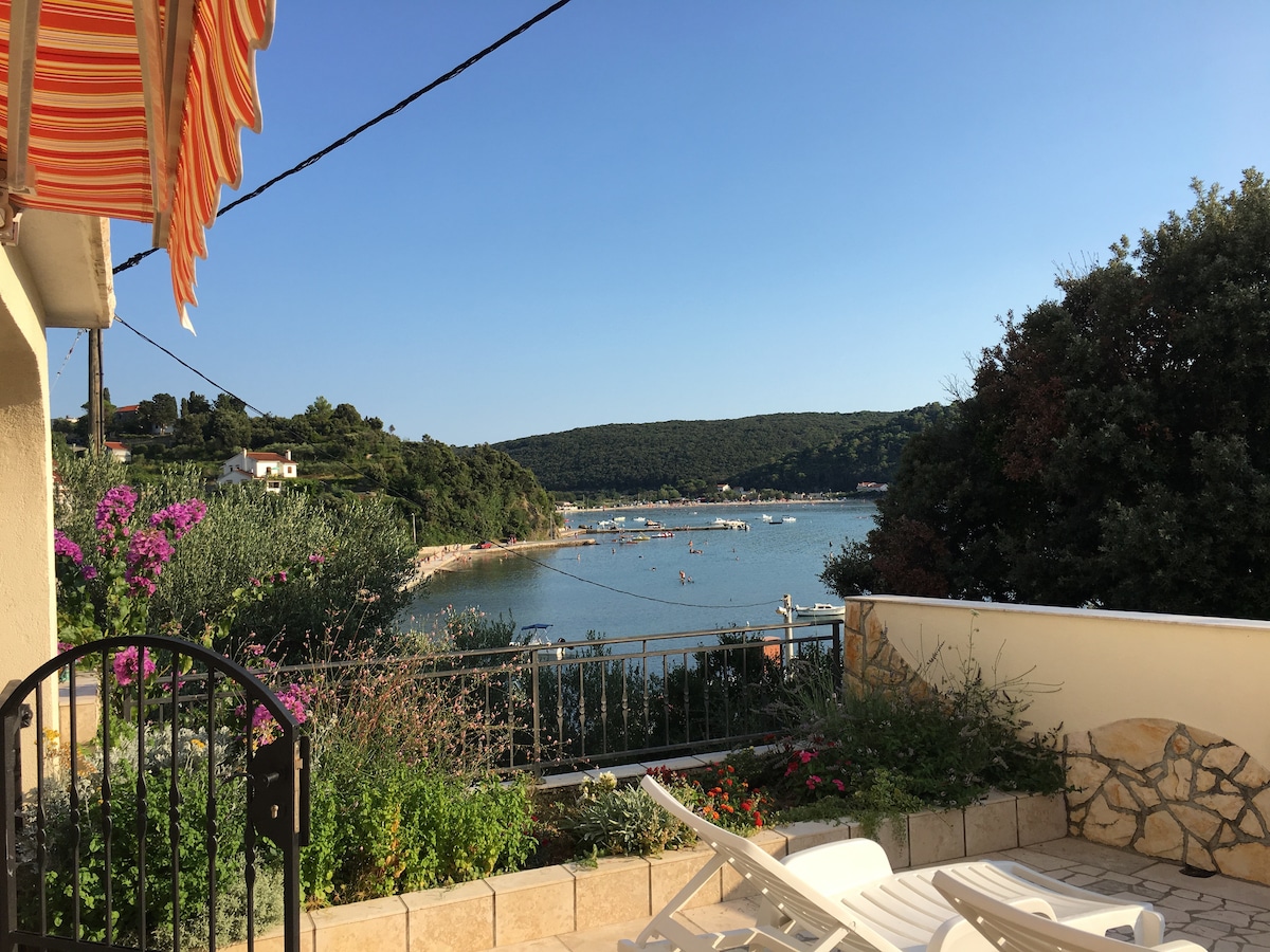 Le studio est en bord de mer et se trouve au premier étage. Il comprend une terrace de 70m2 privée avec vue sur la mer. Le logement est à 10 minutes à pied du centre ville et à proximité (juste à côté) d'un petit supermarché. Le studio peut accueillir 2 voyageurs adultes. Un clic clac est également disponible pour accueillir un enfant.