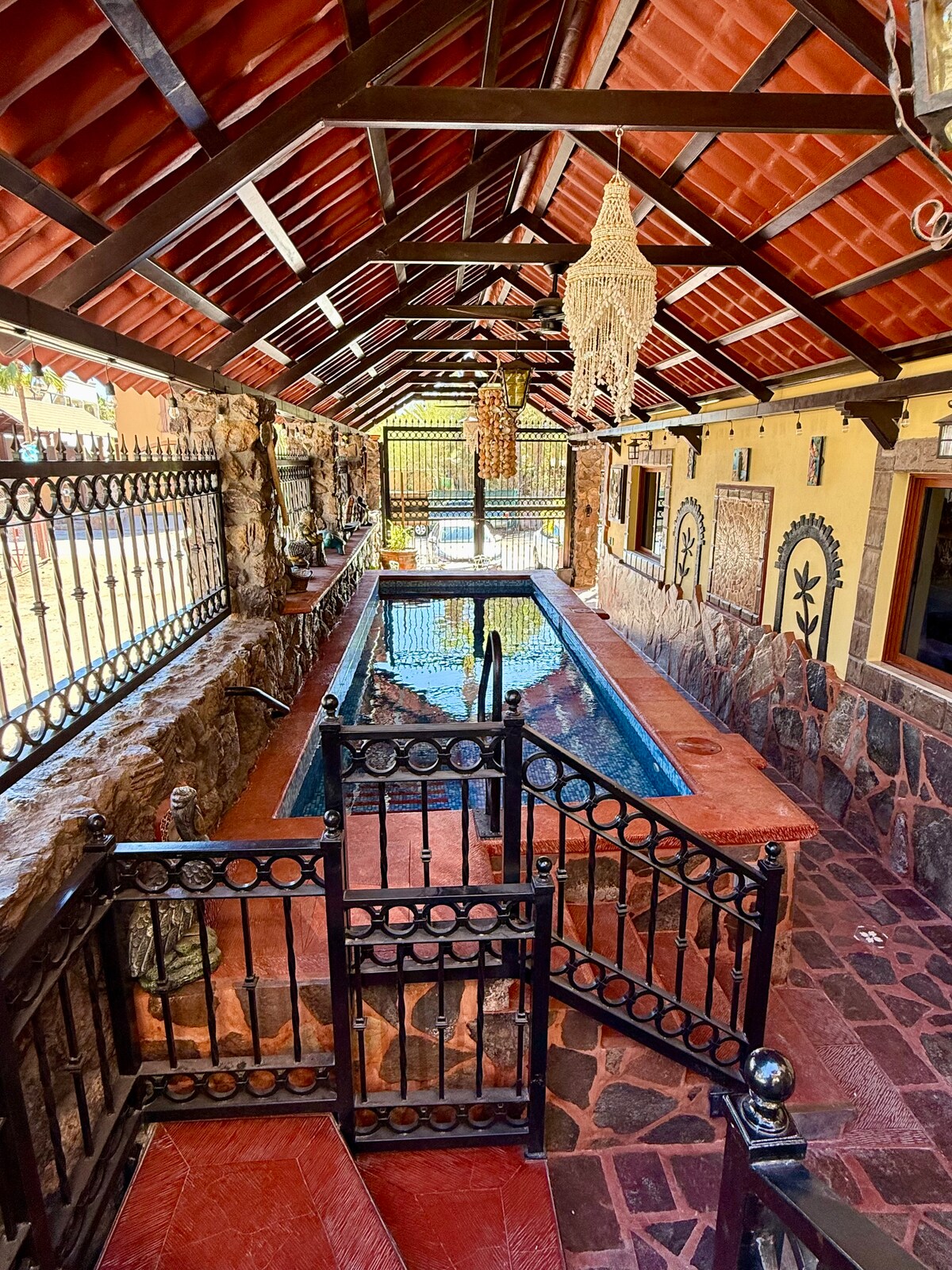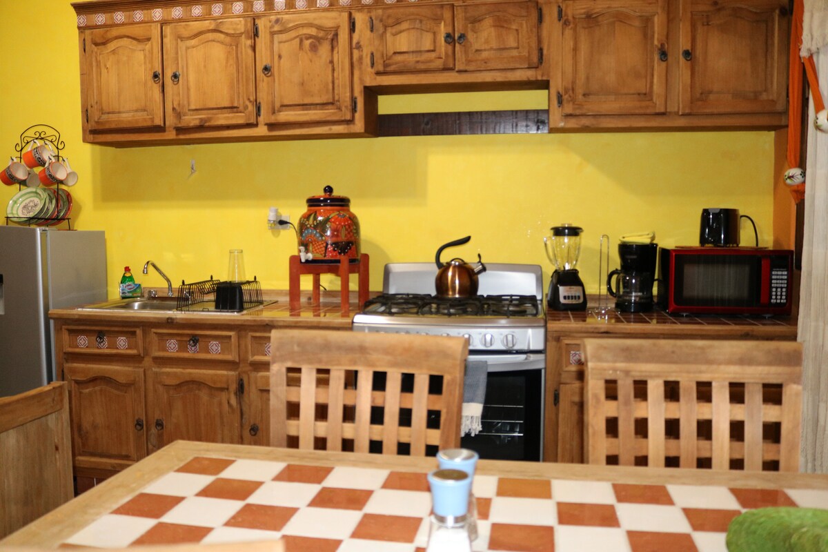 The whole group will enjoy access to everything from this centrally located place 2 blocks from the malecón and 1/2 a block from downtown plaza with restaurants Private 2 unit compound with secure parking First unit is a 1/1 bedroom Second unit 2/2 all with full kitchens and has fire places Equipped with a heated/chilled pool and bar, brick sauna, lawn area, fruit trees, outside horno, bbq area, full of local art work with rancho style furniture and local historically designed architecture