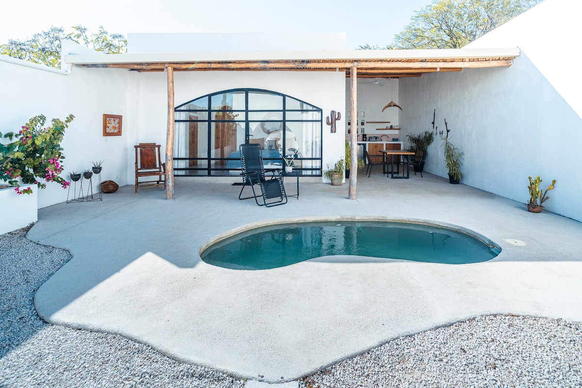 El Pasito offers 5 cabanas. All have been thought out and designed to offer comfort and privacy to our guests. We wanted to make this place a place filled with good vibes, a place where you immediately feel good… In the heart of a fenced property and closed by an electric gate, each cabin has private parking, a terrace, an equipped kitchen and a small private pool. Privacy guaranteed for your stay.