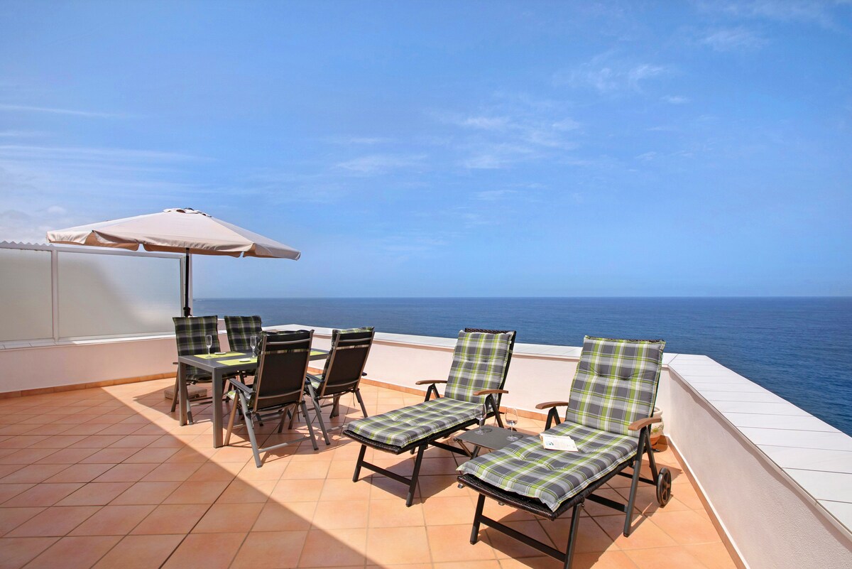 Wake up to breathtaking ocean views from your private, sun-drenched terrace in this stunning waterfront apartment. Recently renovated and thoughtfully designed, this is your perfect paradise in Tenerife. The Space Our modern, one-bedroom apartment is exceptionally bright and designed for ultimate comfort and relaxation. The highlight is the expansive 24 m² terrace, complete with a dining set, where you can enjoy meals with spectacular sea and mountain views.