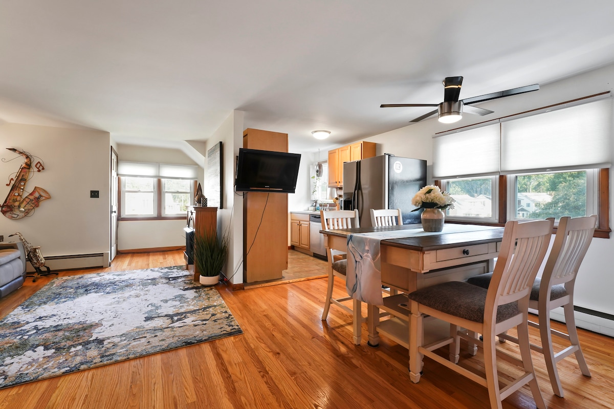 Private, spacious basement suite with separate backyard entrance in quiet, upscale Loudonville. Features 1 bedroom, 1 bathroom with standing shower, 3 queen beds (1 with twin trundle), smart TV, projector with screen, dining table for 6, kids’ play area, large desk with dual monitors, and kitchenette with stove/oven, microwave, mini fridge, coffee maker, air fryer and sink. Self check-in via side walkway to the back basement door and a short flight of stairs inside.
