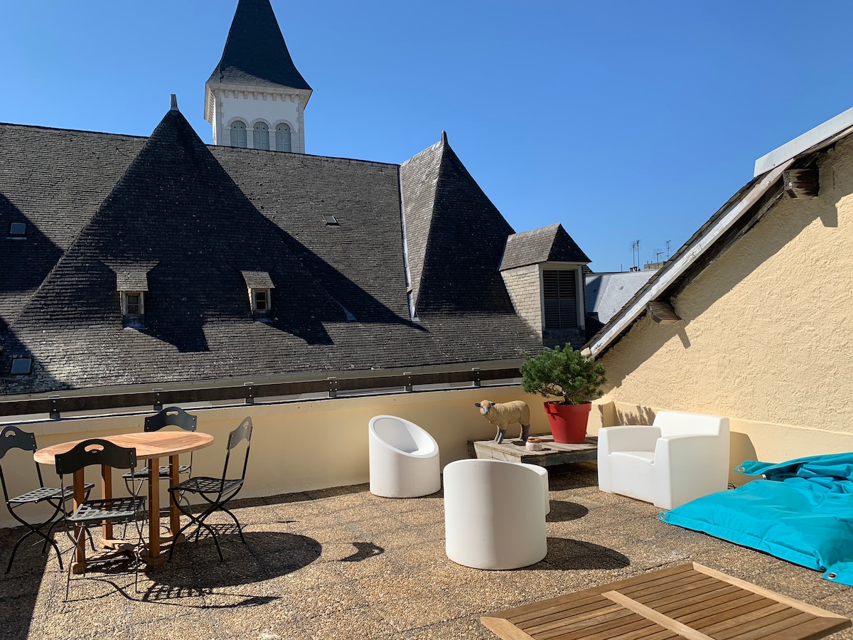 Come and discover this beautiful independent & fully equipped apartment. Private 21 m2 terrace! Exceptional panoramic view of the castle. Reversible air conditioning, for hot days. The apartment is located a 2-minute walk to the shops, 5-10 minute walk to the sanctuary and 1 minute to the castle. The street is lit up at all times, for a self-check-in! Apartment located on the 3rd and top floor without elevator access, for more calm.