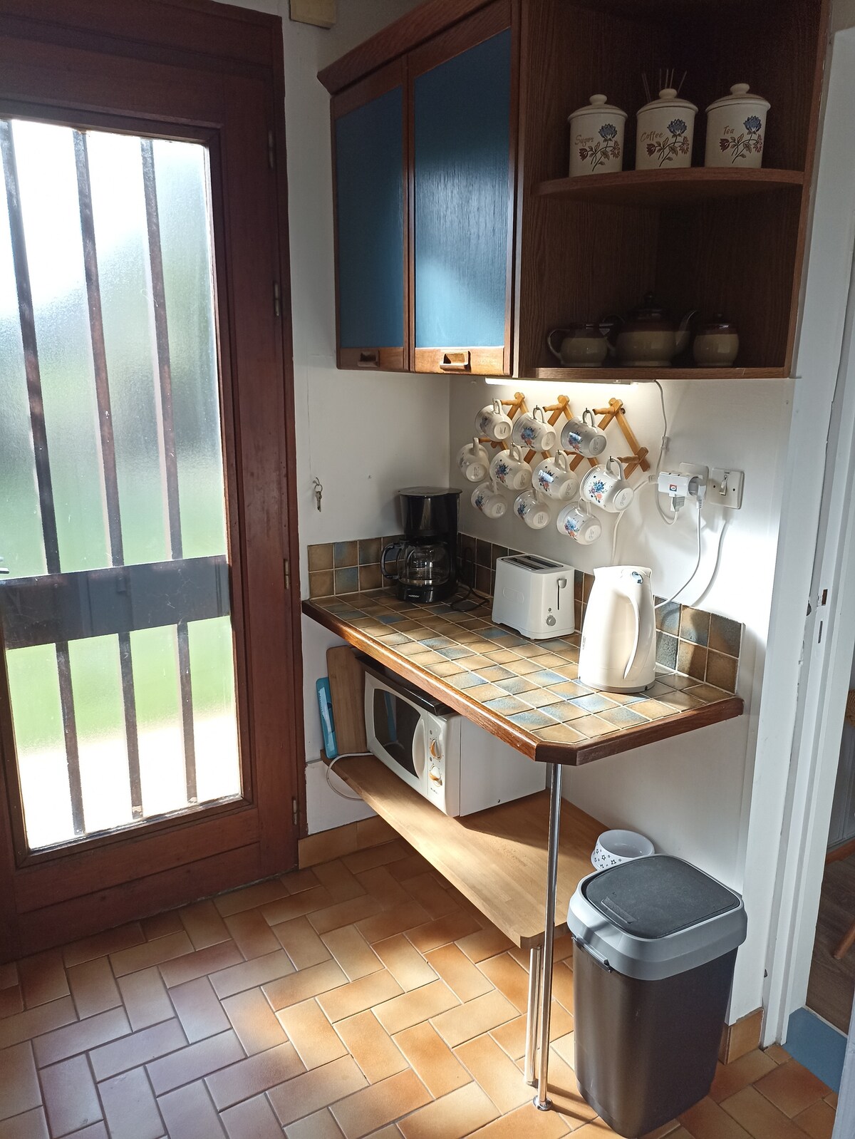 the "la Bohème" bungalow has a capacity of 4 people, it has two bedrooms, which consists of a double bed, and a 90 cm bed. House linen is provided, a bed and a high chair for baby. In the living room there is a Scandinavian sofa bed for 2 people, a TV (Wi-Fi) table, chairs, a kitchenette equipped with a microwave, induction hob, vintage refrigerator, a Senseo coffee machine (with pods), a kettle. The bathroom is quite spacious
