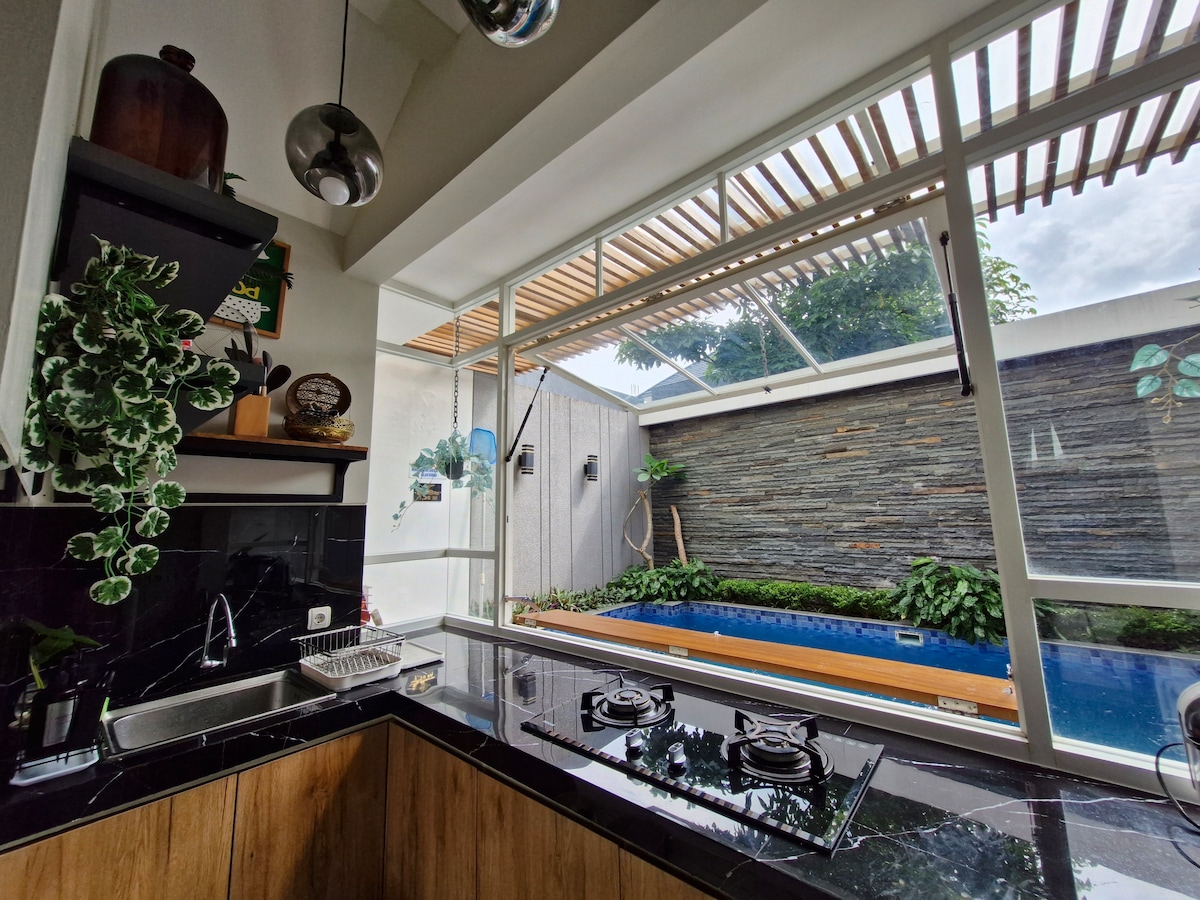 A comfortable residence that feels like it has a cafe-style kitchen accompanied by the singing of the trees and the coolness of the stone city and the sound of the pool water that brings the romance of your vacation with your family or partner. And enjoy karaoke and bbq facilities that can add intimacy