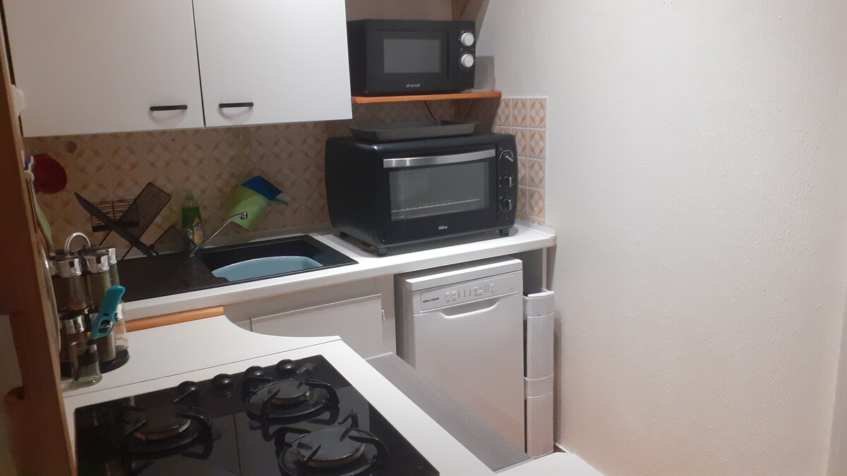 Nice studio with a spacious and bright room with unobstructed views, kitchenette with microwave combined with multifunction grill (no hob), Moulinex multi-cooker, Senseo coffee machine and shower room. Possibility of enjoying a terrace space, a private petanque court and also the availability of a folding bed for children under 2 years old