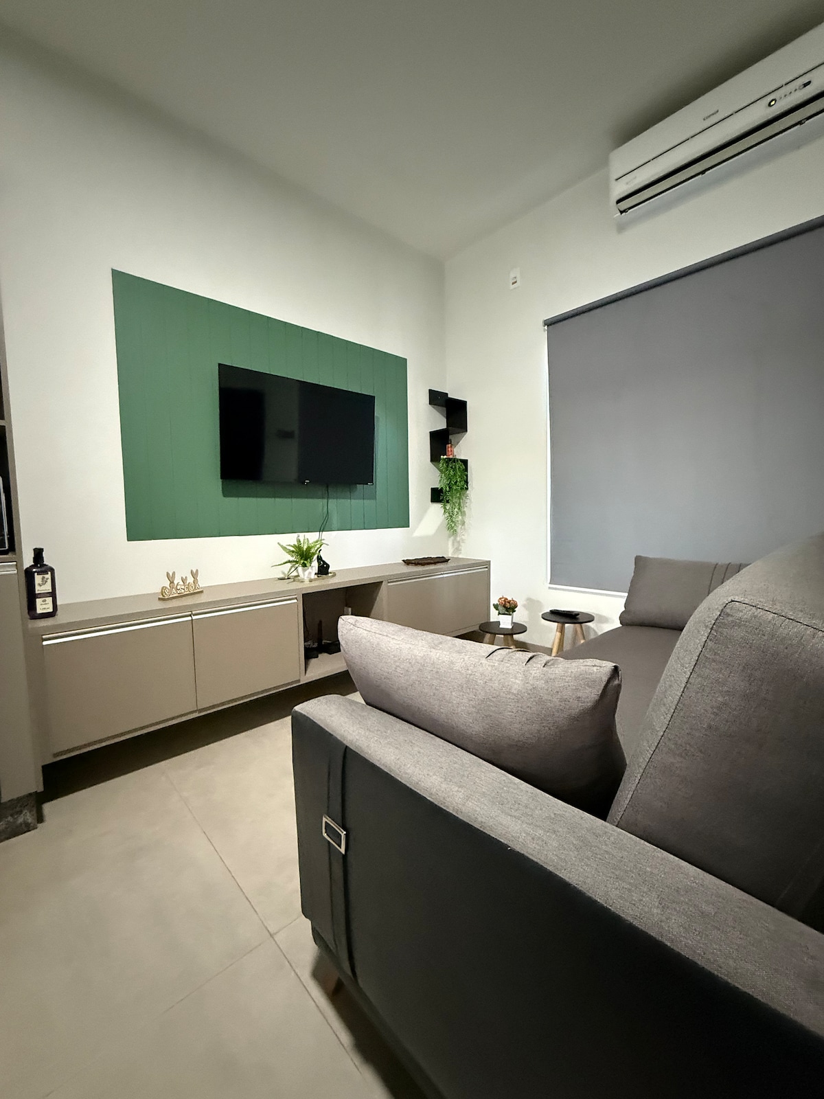 Cozy apartment for up to 4 people, in a complete condominium, with swimming pool, sports court and sauna. Ideal for leisure or work, it offers a fully equipped kitchen, washing machine, smart TV, Wi-Fi, bed linen, towels, hairdryer, and air conditioning. Privileged location, with easy access to shops and main thoroughfares of the city. Perfect for a couple, families or small groups.