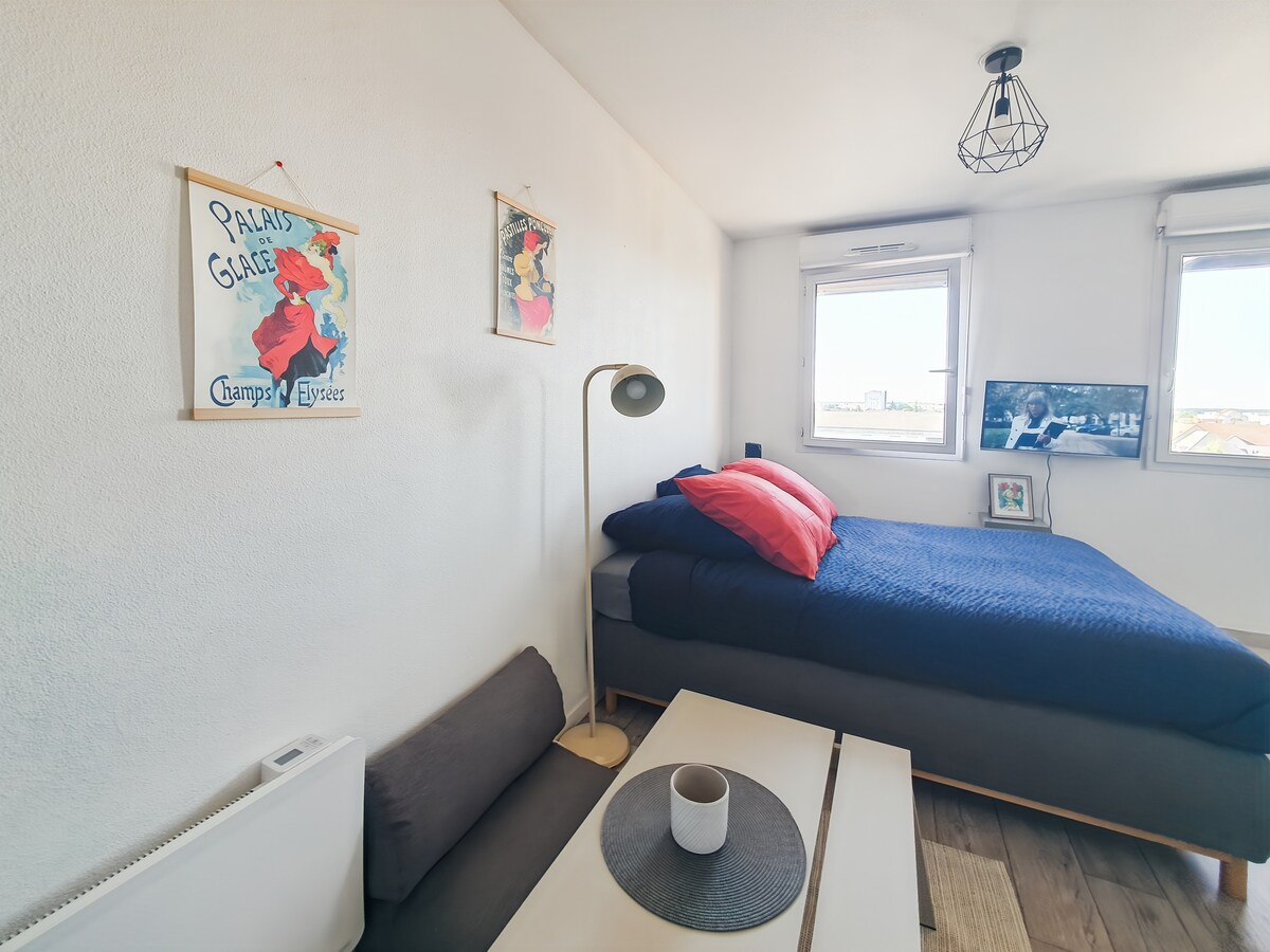 Studio tout équipé à Lucé, idéal pour découvrir Chartres et son patrimoine. À 2 min du bus pour le centre-ville : cathédrale, vieux Chartres, musées, et Chartres en Lumières à portée de main. Calme, pratique, avec stationnement gratuit dans la rue. Commerces et services à proximité. Un pied-à-terre parfait pour une escapade culturelle ou un déplacement pro !