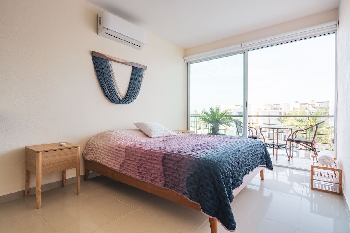 🏖️Beautiful and spacious beachfront apartment in an exclusive condominium with direct beach access. ⭐ Beautiful, comfortable, oceanfront with a spectacular view of the bay. Enjoy sunsets from the balcony and excellent amenities: pool, private beach, awning and beach chairs. Gardens, Parking and 24/7 Security. It has air conditioning, internet, equipped kitchen, modern decor and impeccable cleanliness. Located in a downtown area and close to restaurants and shops.