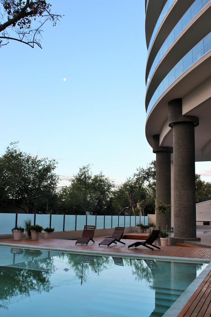 New, cozy apartment with a large en-suite bedroom. It is located in a new luxury building, located in a residential area, but next to restaurants, meters from Gral San Martín Park and the busy Arístides Street. Complex with all amenities included: swimming pool, gym on two levels, game room with pool, ping pong table and foosball, sum, sauna, whirlpool, and a micro cinema available. It has laundry, 24/7 security and a private underground garage