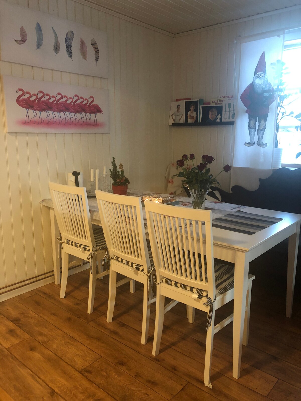 Cozy appartment with own entrance, 80 m2, on the countryside, 20 minutes from central Luleå and from Kallax Airport. Modern kitchen with table for 6 person, big bathroom with shower cabin, 2 bedrooms with 4 sleeping places, living room with TV, bed sofa and small desk. Laundry room with washing maching and tumbler. Outside deck with possibility to eat outside in summer, access to traditional barbecue hut all year around. 2 parking places with access to engine heater.