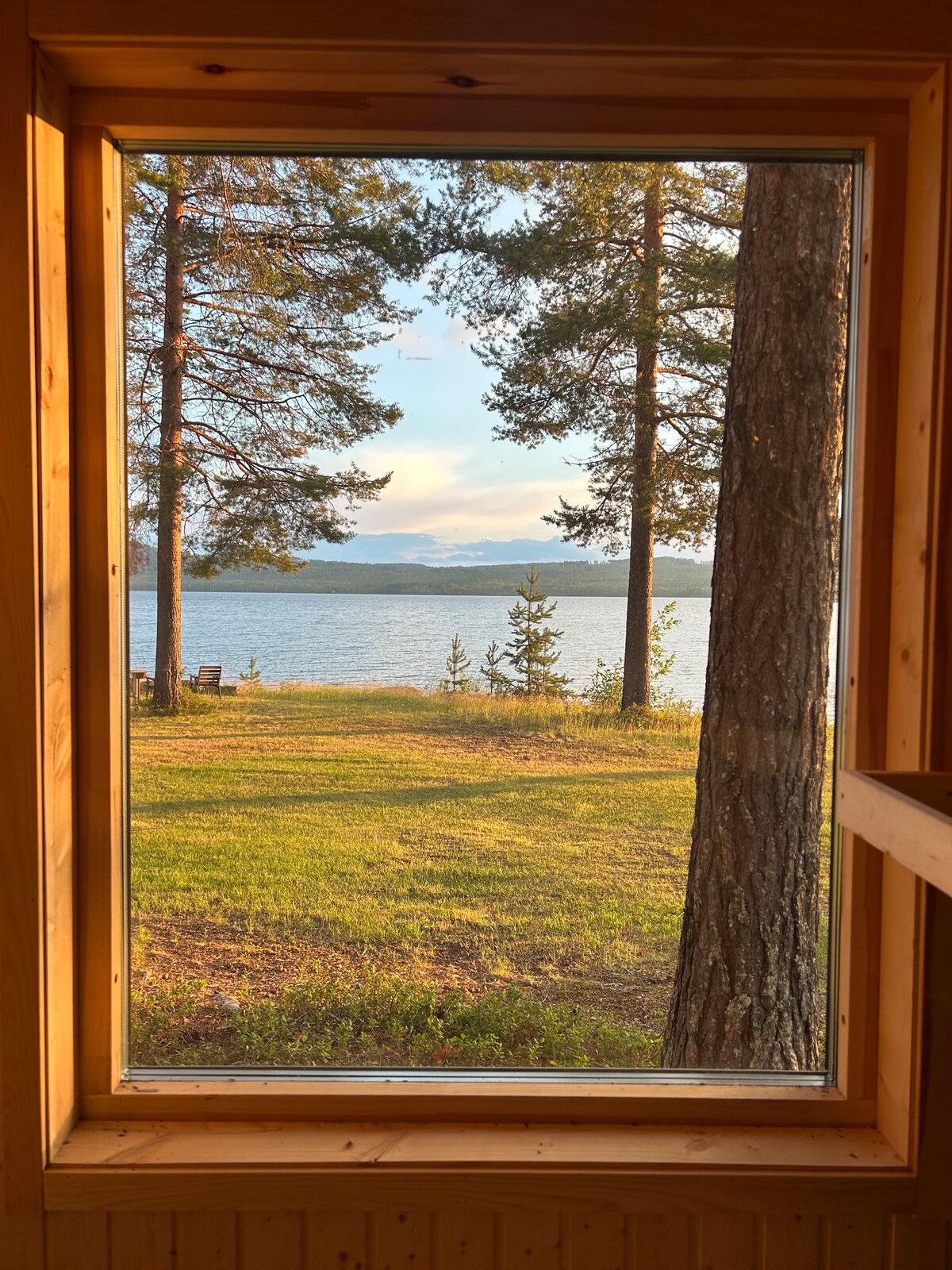 House in prime location, with panorama view over the lake Djupträsket, attached to the river Kalixälven. Private beach with a sauna directly on the beach just a few steps from the main building. The main building of 75m2 is all refurbished with two bedrooms, kitchen, dining room, living room and a new bathroom. Large windows and a major outside terrace, offers you a breathtaking view through all seasons.