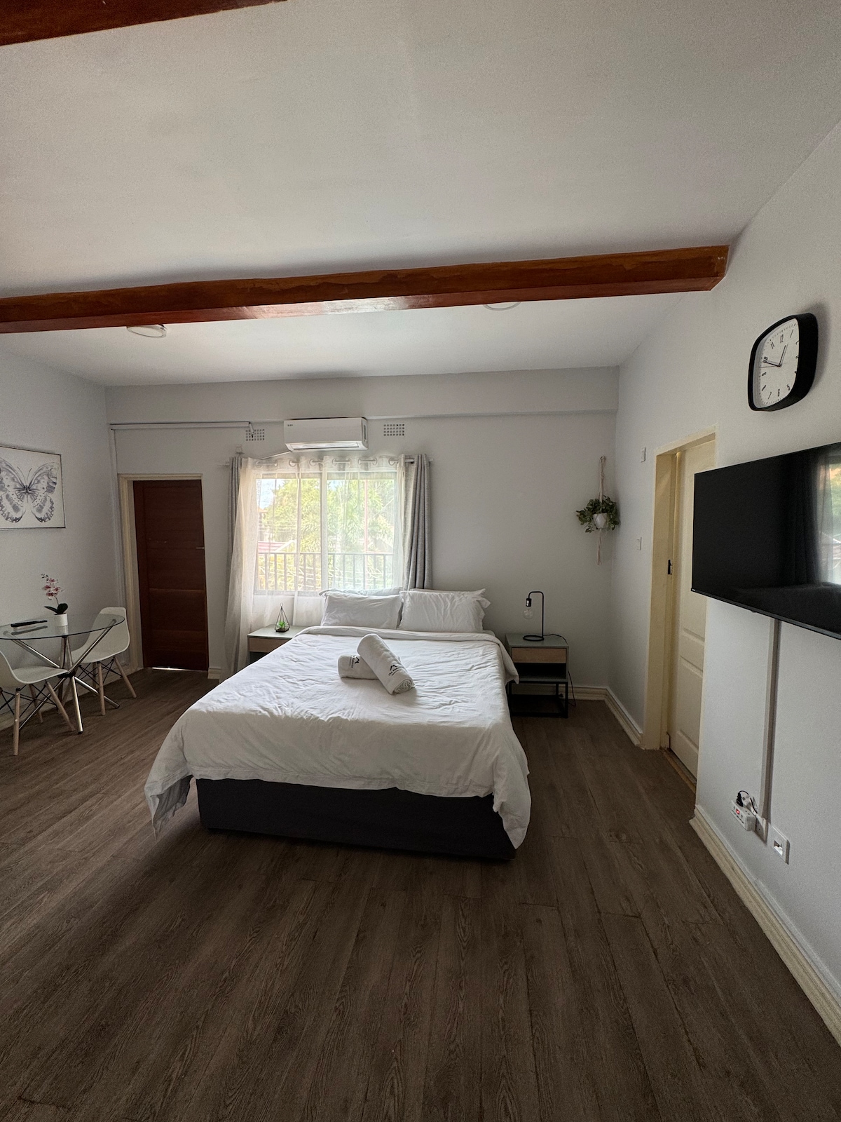 Forget your worries in this spacious and serene one-bedroom retreat. The One by Tefa offers solar power, fast Wi-Fi, a smart TV with Netflix, Prime Video, and YouTube. Enjoy a fully fitted kitchen, modern shower, a private patio perfect, a Gym and Swimming Pool for relaxing or unwinding after a long day — your calm escape in a lush, quiet neighborhood of Rockfield, Lusaka.